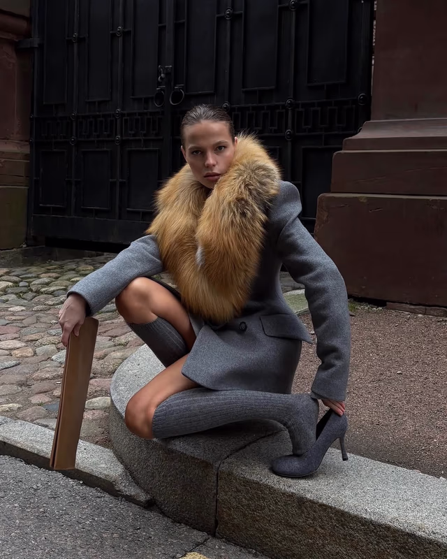 Создание образов порой похоже на игру, и у нее есть свои правила. Например, сочетать трендовые и эффектные айтемы с чем-то базовым – как раз этим приемом мы и воспользовались сегодня. За основу лука взяли черную водолазку и юбку – комбинация почти строгая, но потому и подходящая. К ним – высокие сапоги в том же цвете, которые вытягивают силуэт (и не «делят» его на части, как было бы с ботильонами). А вот дальше-то добавляем тренды – широкий ремень, короткую шубу и акцентные серьги. Такая модная математика: 70% – база, 30% – кое-что экстра.