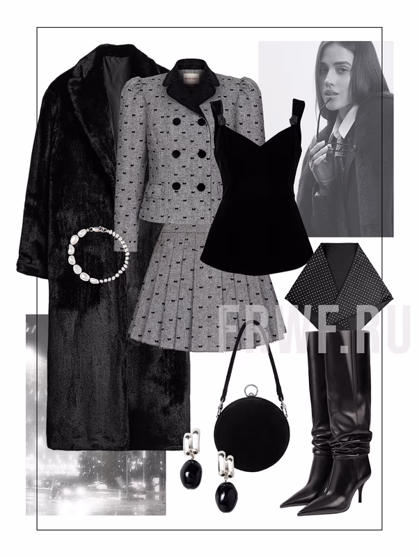 Сегодня в свете софитов – платье-сетка бренда Idol. Его мы предлагаем носить прямо на голое тело, тем более что подкладка позволяет. Дополняем сумкой из натуральной кожи, – если приглядеться, ее изогнутая форма копирует принт платья – серебряными украшениями и лодочками в стиле Miu Miu. И да, последние рекомендуем надевать с носками. Во-первых, так ноги будут в тепле. Во-вторых, образ интереснее – сплошные плюсы.
