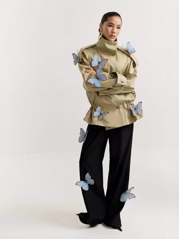 В образе у Саши Буримовой — наглядное how-to для тех, кто не знает, как носить ультрамодные кожаные тренчи. На самом деле они ни к чему не обязывают: Саша надела плащ с «пижамными» белыми штанами Belle You и пушистыми тапочками. Берем на заметку и больше не стесняемся домашнего вайба в своих модных луках.